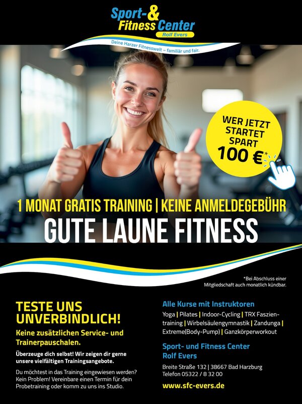 Dafür sorgen wir in deiner Harzer Fitnesswelt. Und zwar familiär und fair.