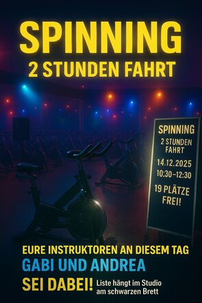 | Indoor Cycling | 10:00 - 11:00 Uhr | Kursraum 1 |